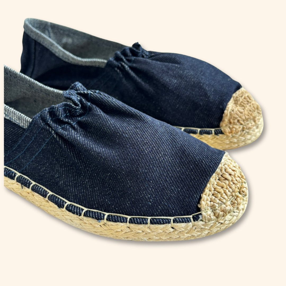 Alpargatas Azul Oscuro Hombre con diseño superior arrunchado fabricadas en yute, conocidas como "fibra dorada" por ser de origen vegetal y 100% biodegradable, su material las hacen resistentes, cómodas e ideales para cualquier ocasión. Son un producto colombiano fabricado por artesanos de la región.