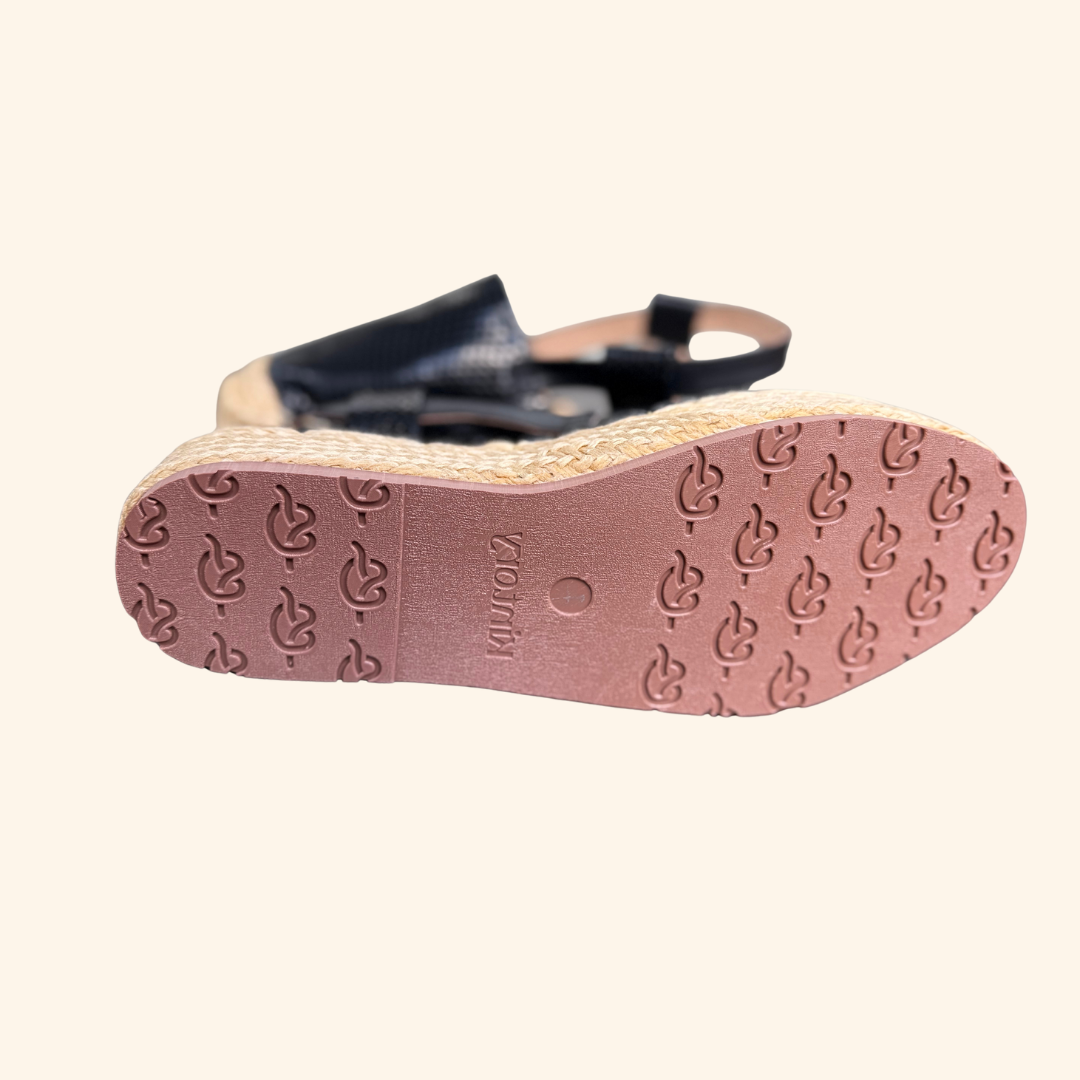 Sandalia Serpiente Negra Mujer fabricadas en yute, conocidas como "fibra dorada" por ser de origen vegetal y 100% biodegradable, su material las hacen resistentes, cómodas e ideales para cualquier ocasión. Son un producto colombiano fabricado por artesanos de la región.
