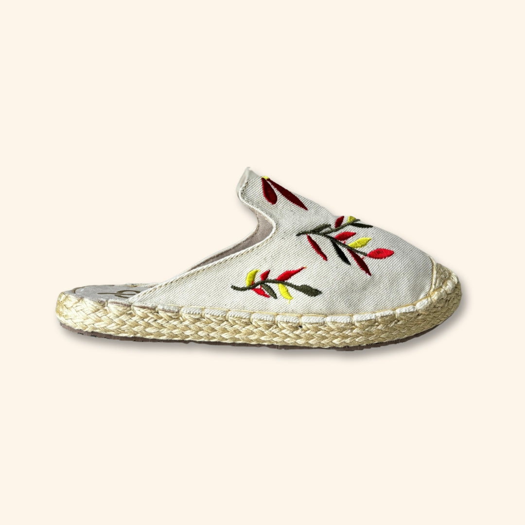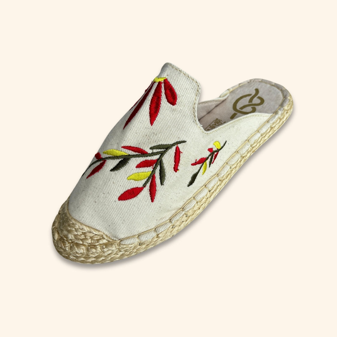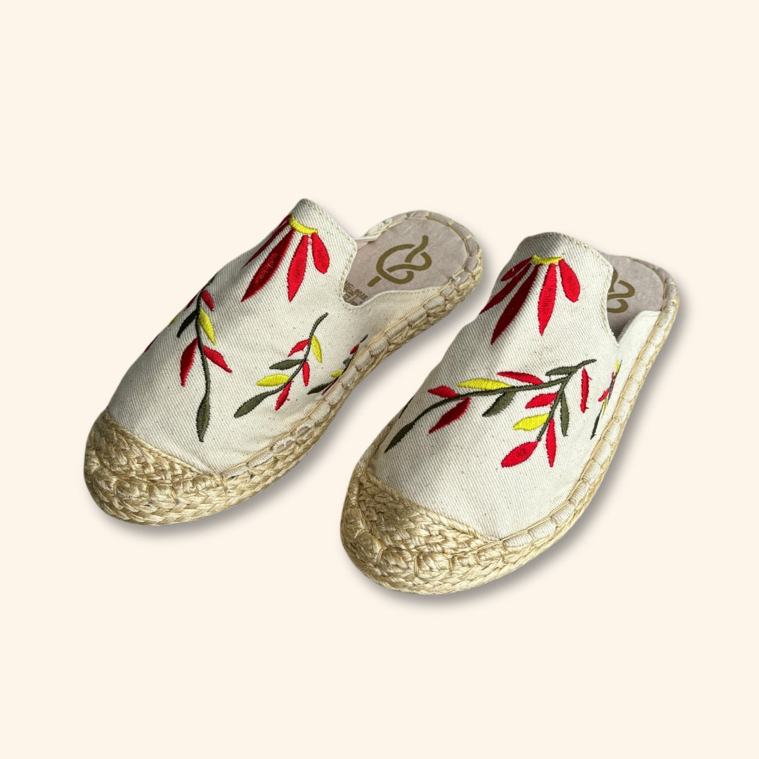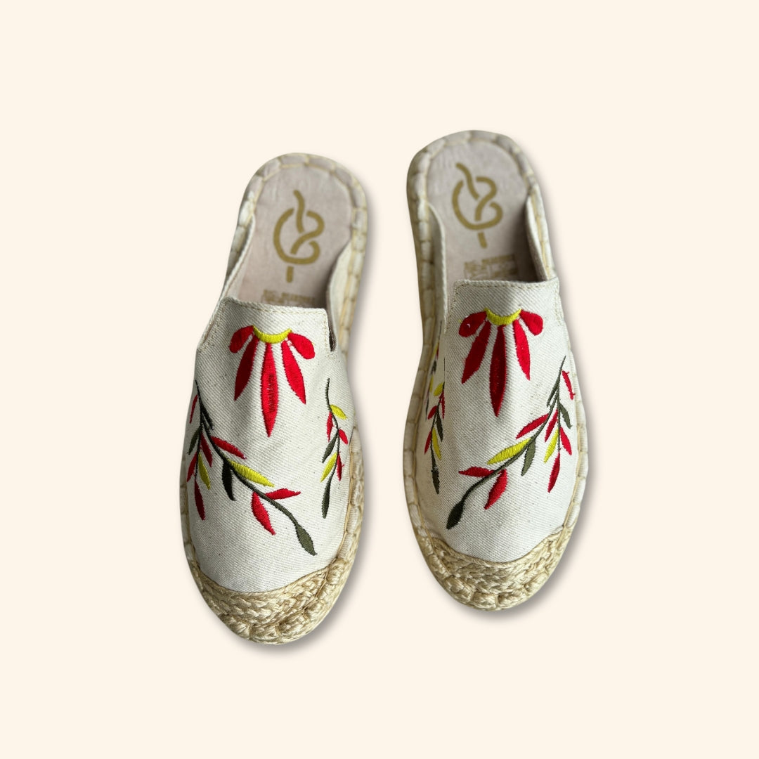Zueco Bordado Flores Mujer fabricadas en yute, conocidas como "fibra dorada" por ser de origen vegetal y 100% biodegradable, su material las hacen resistentes, cómodas e ideales para cualquier ocasión. Son un producto colombiano fabricado por artesanos de la región.